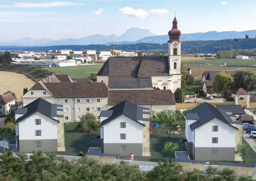 Realisierung von drei dreigeschoßigen Gebäuden zu je 9 barrierefreien Wohnungen und Tiefgarage.